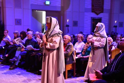 “I Bring You Tidings of Great Joy” (folksong “Lord Rendal”, Somerset) is a greeting! God reaches down to a waiting and hoping world. An angel’s voice from a darkened Judean sky, solemn and glorious, brings forth the first words of Godspell. There is a change of mood in the music as the liturgy proceeds to tell of our deep longing and searching for God.